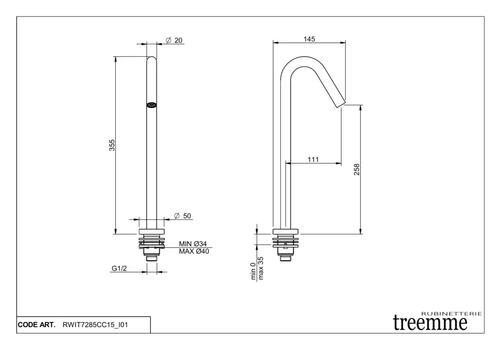 Treemme X-change mono Высокий излив для раковины 35,5 см, цвет: chrome RWIT7285CC15