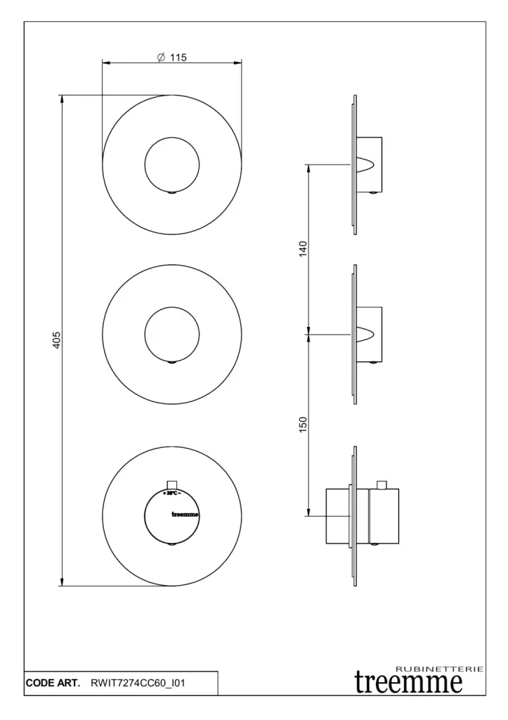 Treemme X-change Смеситель для душа термостатический встр., 2 потреб., внешняя часть, цвет:chrome RWIT7274CC60