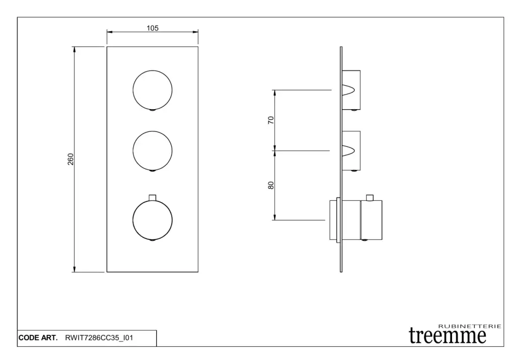 Treemme X-change Смеситель для душа термостатический встр., 2 потреб., внешняя часть, цвет:chrome RWIT7286CC35