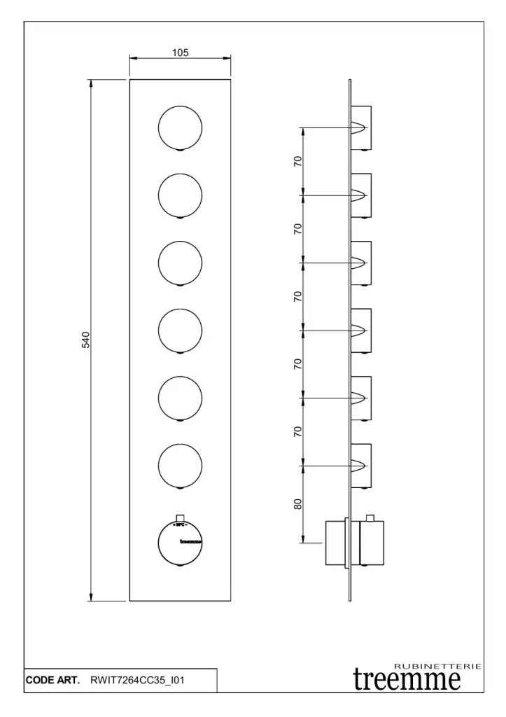 Treemme X-change Смеситель для душа термостатический встр., 6 потребителей, внеш. часть, цвет:chrome RWIT7264CC35
