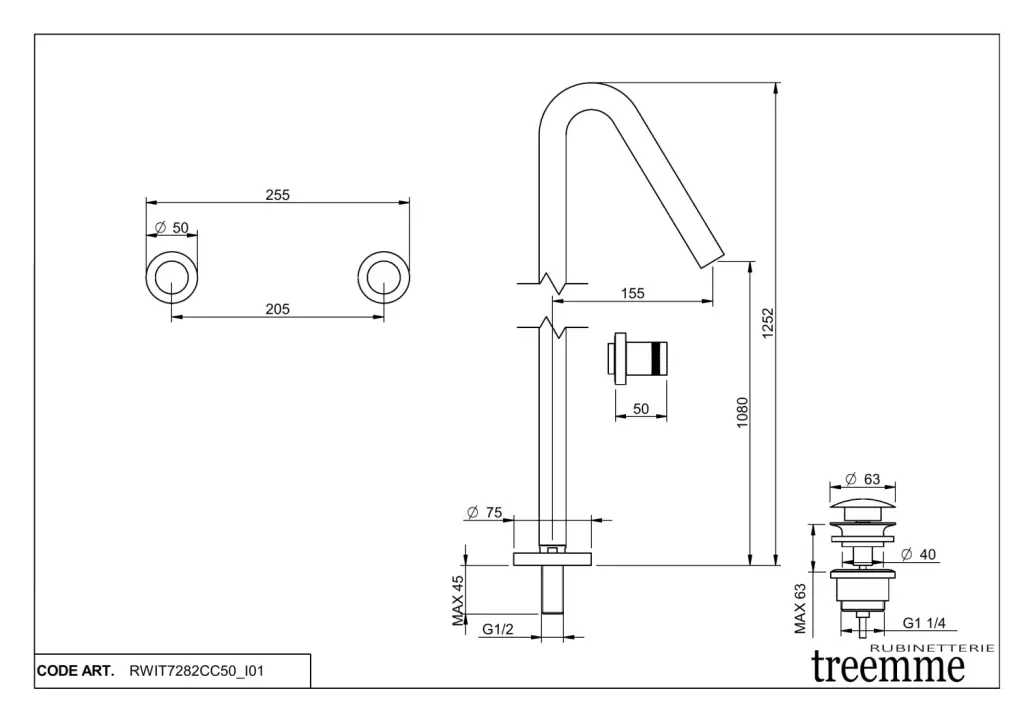 Treemme X-change Смеситель для раковины напольный, высота излива 107,3 см, цвет: chrome RWIT7282CC50