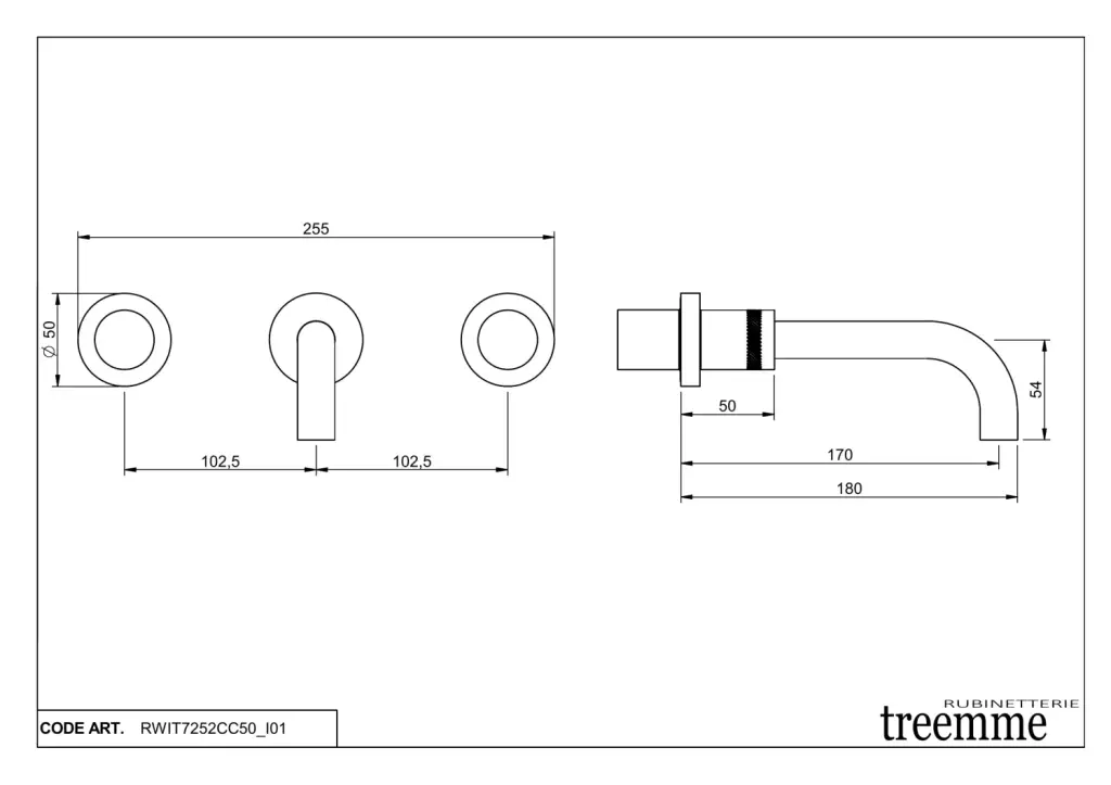 Treemme X-change Смеситель для раковины встраиваемый, внешняя часть, излив 17 см, цвет: chrome RWIT7252CC50