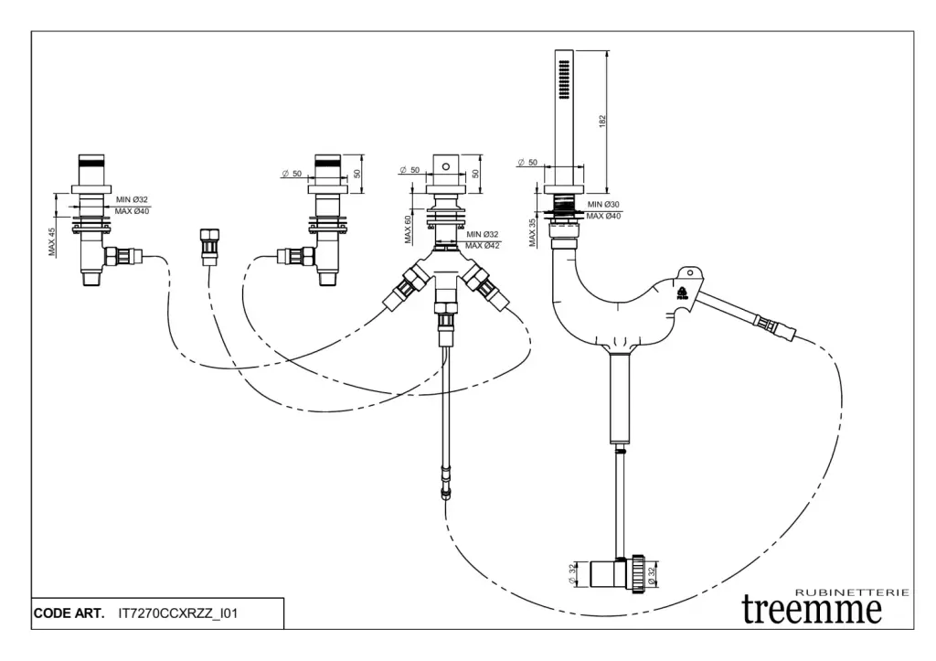 Treemme X-change Смеситель для ванны накладной с ручным душем, 1 вид струи, цвет: chrome IT7200CCXRZZ
