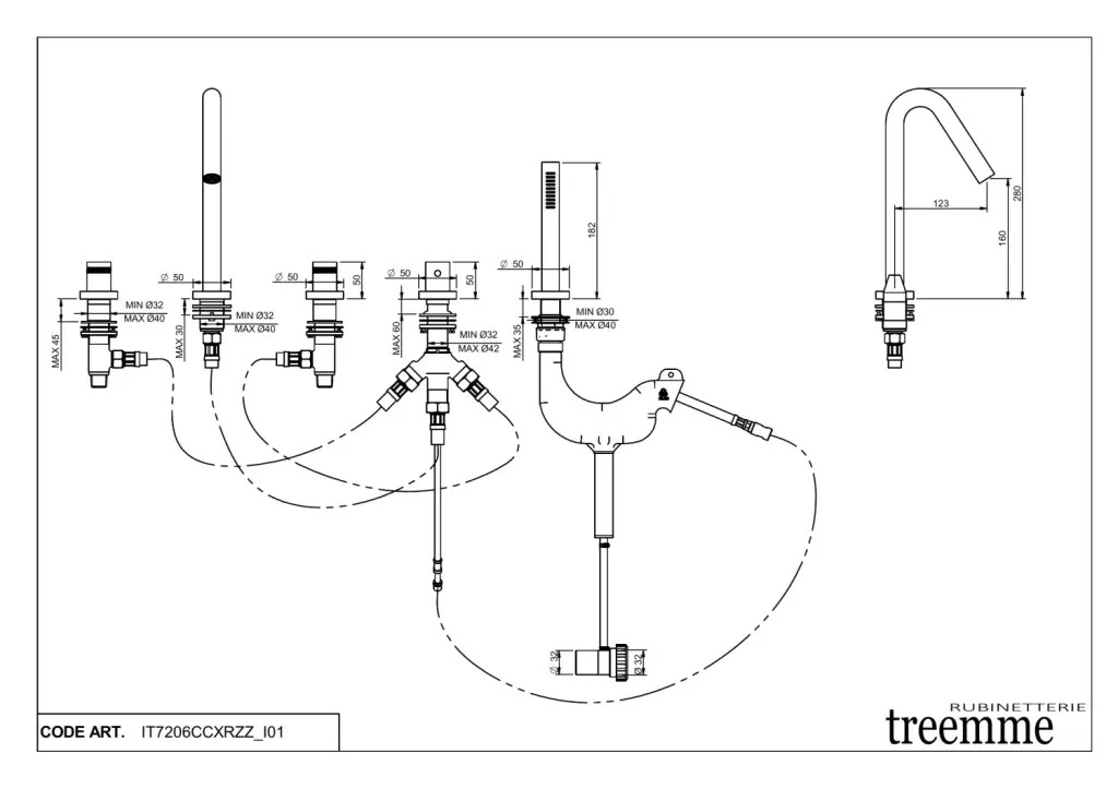 Treemme X-change Смеситель на борт ванны на 5 отверстий, с ручным душем, внешняя часть, цвет: chrome IT7206CCXRZZ