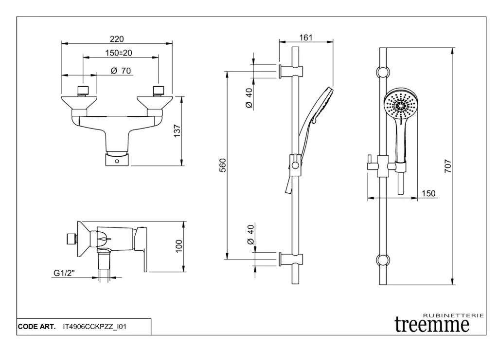 Treemme Zip Душевой комплект - смеситель накладной без излива, ручной душ, штанга, цвет: chrome IT4906CCKPZZ