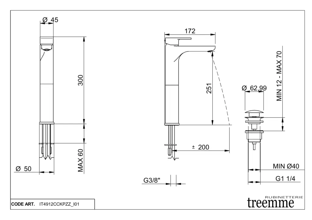 Treemme Zip Смеситель для раковины высокий, с д/к, высота излива 25,1 см, цвет: chrome IT4912CCKPZZ