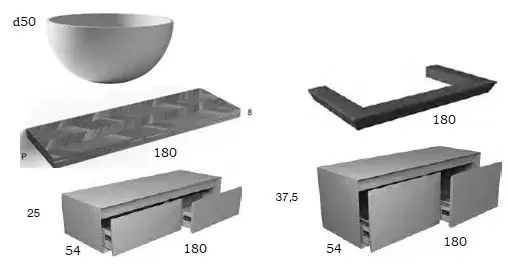 Комплект мебели с раковиной Antonio Lupi Panta Rei PI14180.DX+BC254.180+NUVOLA.DX+SRC5445*2 ROVERE CASTANO, топ FLUMOOD белый