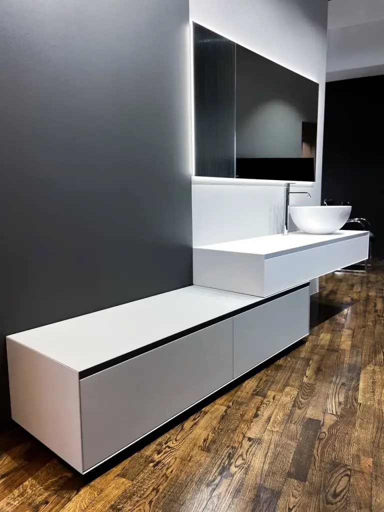 Тумба для ванной комнаты Antonio Lupi Panta Rei PI4180_D + PB4180_D + PZ54 180 + TARSIA147 188 + T47*5 + URNAMOOD satin grigio smog/satin bianco/Rovere thermo