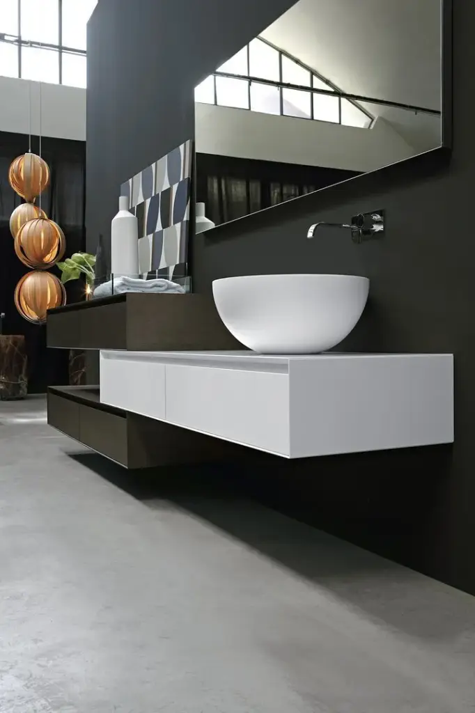 Комплект мебели с раковиной Antonio Lupi Panta Rei PI12180+BC254.180+SENSO+MICRO+ (DOMINO90_G = DOMINOC5+DOMINO31+DOMINO23(2PZ)+DOMINO22+DOMINO21) GRIGIO SMOG OPACO-615/Flumood bianco