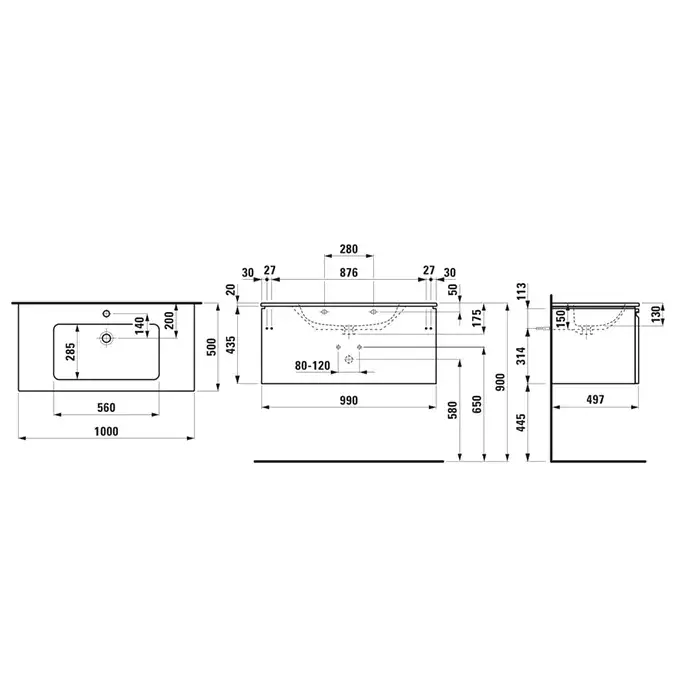 Laufen Pro S Раковина 105х46.5х9.5 см, 1 отв., подвесная/накладная, c переливом, цвет: белый