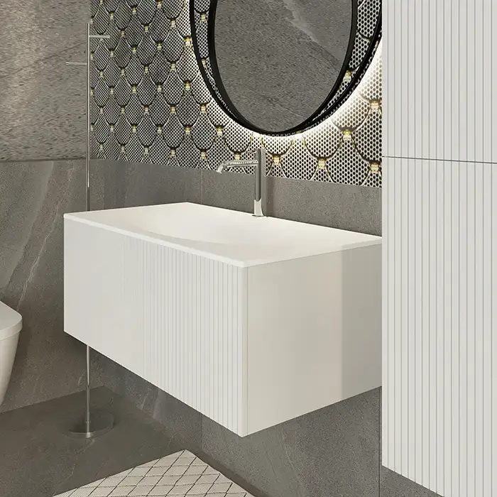 TW Shape комплект подвесной мебели 100х50см, с раковиной, с 1 выдвиж. ящиком с механизмом push-to-open, цвет: серый матовый RAL7016