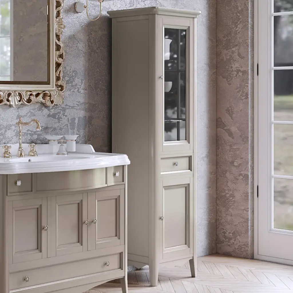 TW Veronica, Колонна 50.2/45x40/37.4xh172см, 1выдв.ящик, 2 распашные дверки, доводчики Blum (петли справа-DX), напольная, цвет: TORTORA, ручки: Riflesso бронза