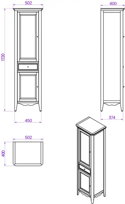 TW Veronica Колонна 50,2х40хh172 см, 1выдв.ящик, цвет Bianco, ручки Riflesso бронза VER3050S-B