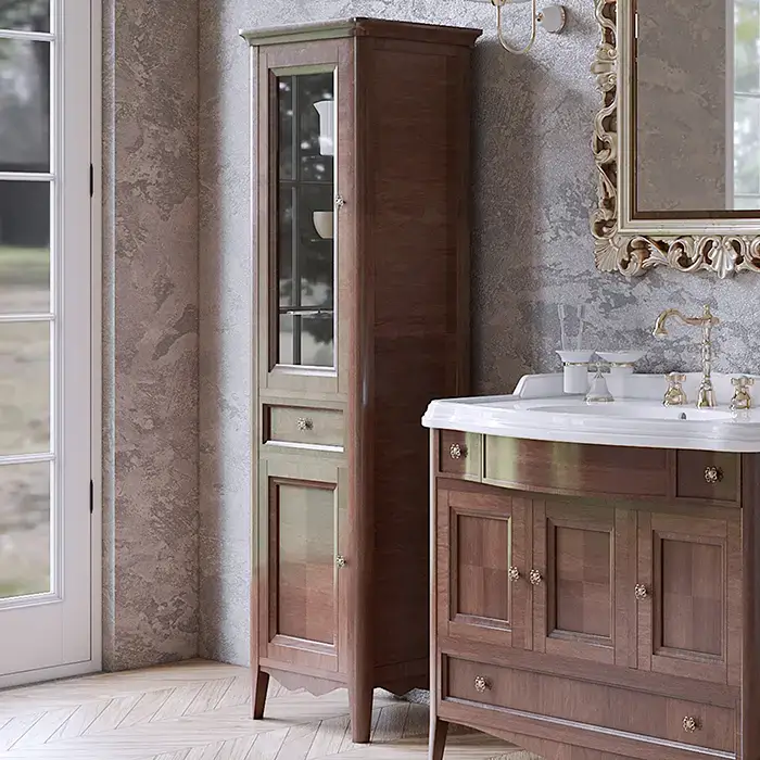 TW Veronica, Колонна 50.2/45*40/37.4*h172см, 1выдв.ящик, 2 распашные дверки, доводчики Blum (петли слева-SX), цвет: NOCE, ручки: Riflesso бронза