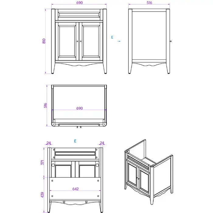 TW Veronica Nuovo комплект мебели с 2-мя дверцами, с доводчиками Blum, ручки: бронза, 68см, напольный, цвет: белый