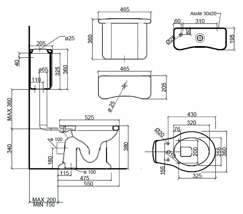 Sbordoni Palladio Унитаз напольный 36х55хh38 см, слив в пол, цвет белый 7020