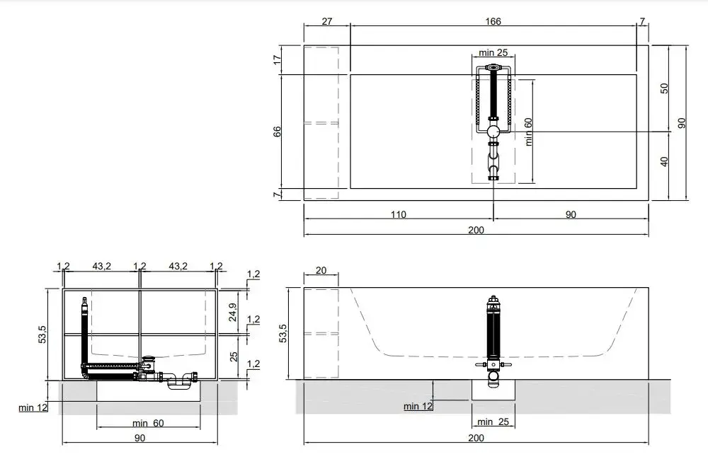 Antonio Lupi Biblio Ванна прямоугольная отдельностоящая, 200х100х53.5см, цвет: белый