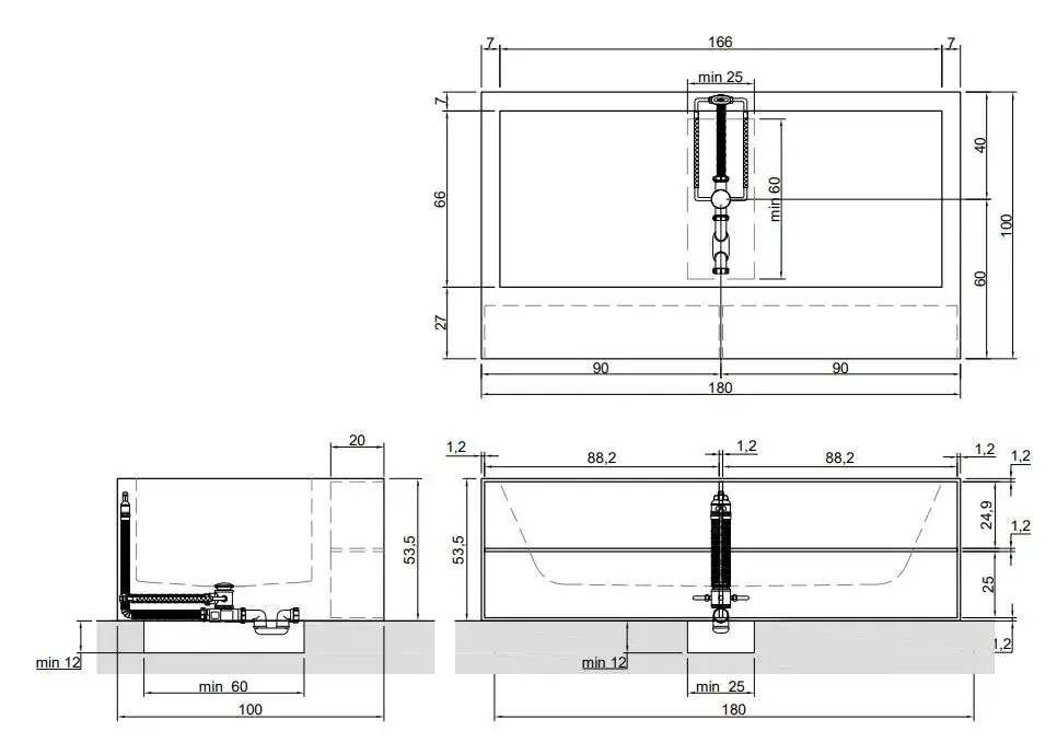 Antonio Lupi Biblio Ванна встраиваемая 180х90х53.5см, цвет: белый