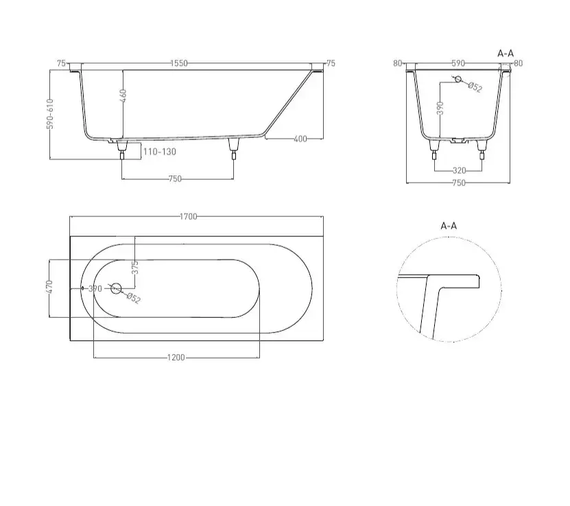 Ванна SALINI ORNELLA 170 102311G S-Sense глянцевый белый