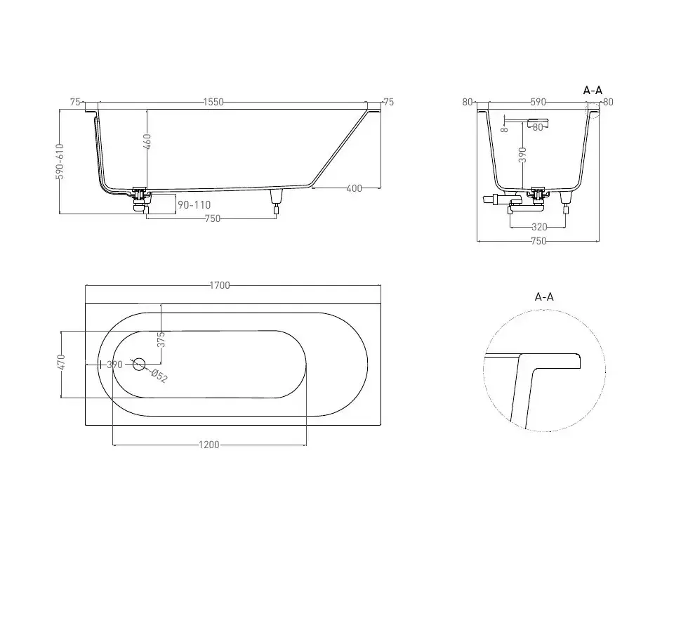 Ванна SALINI ORNELLA KIT 102411G белый глянцевый, донный клапан белый