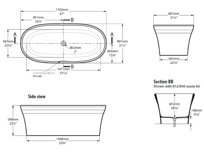 Ванна Victoria+Albert Warndon WAR-N-SW-NO White QUARRYCAST