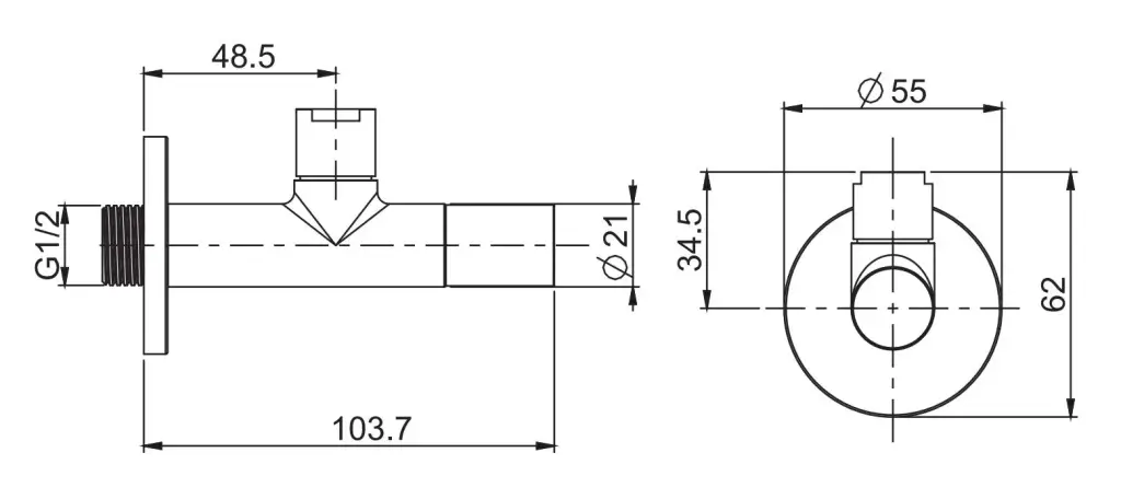 Вентиль угловой под раковину слив 1/2" x 1/2" сталь