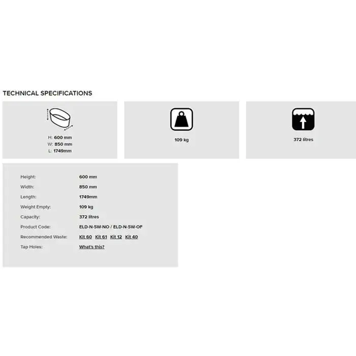 Victoria + Albert Eldon Ванна без переливного отверстия, 174,9х85 см, цвет: белый ELD-N-SW-NO