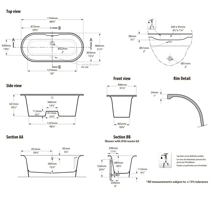 Victoria + Albert Monaco, Ванна, 174,4х80,6 см, цвет: белый MON-N-SW-OF