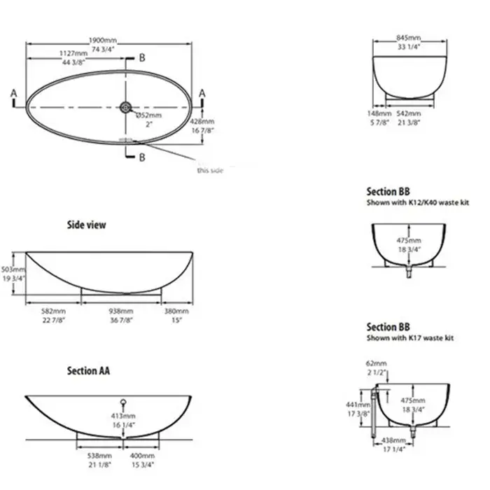 Victoria + Albert Napoli Ванна, 190х84,5 см, quarrycast, цвет: белый NAP-N-SW-NO