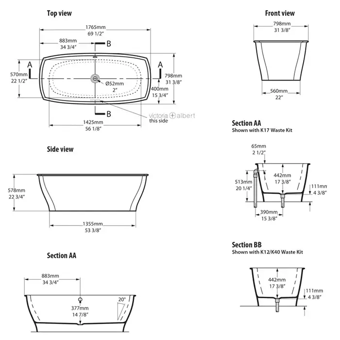 Victoria + Albert Pembroke Ванна, 176,5х79,8 см, цвет: белый PEM-N-SW-NO