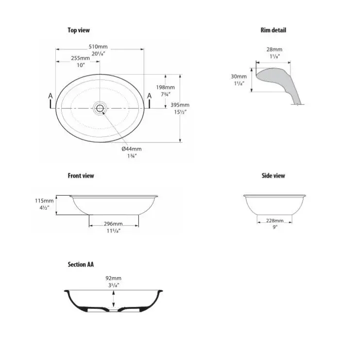 Victoria + Albert Radford Раковина, 51х39,5 см, цвет: белый VB-RAD-51-NO