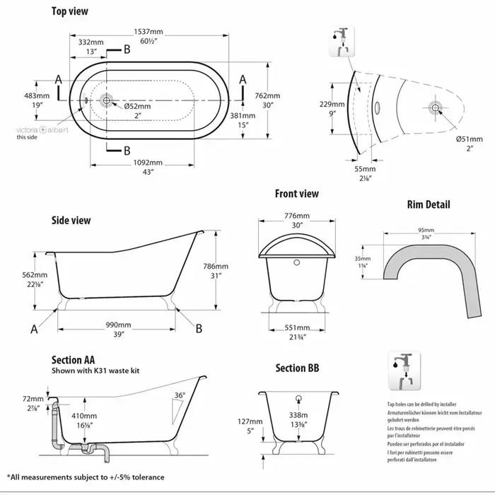 Victoria + Albert Shropshire Ванна, 153,7х76,2 см, цвет: белый SHR-N-SW-OF+FT-SHR-BN