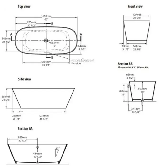 Victoria + Albert Vetralla Ванна, 165х72,7 см, цвет: белый VE2-N-SW-NO