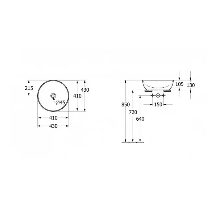 Villeroy&Boch Artis Раковина накладная 430*430*125h, без отв. под смеситель, без перелива, TitanCeram, цвет альпийский белый