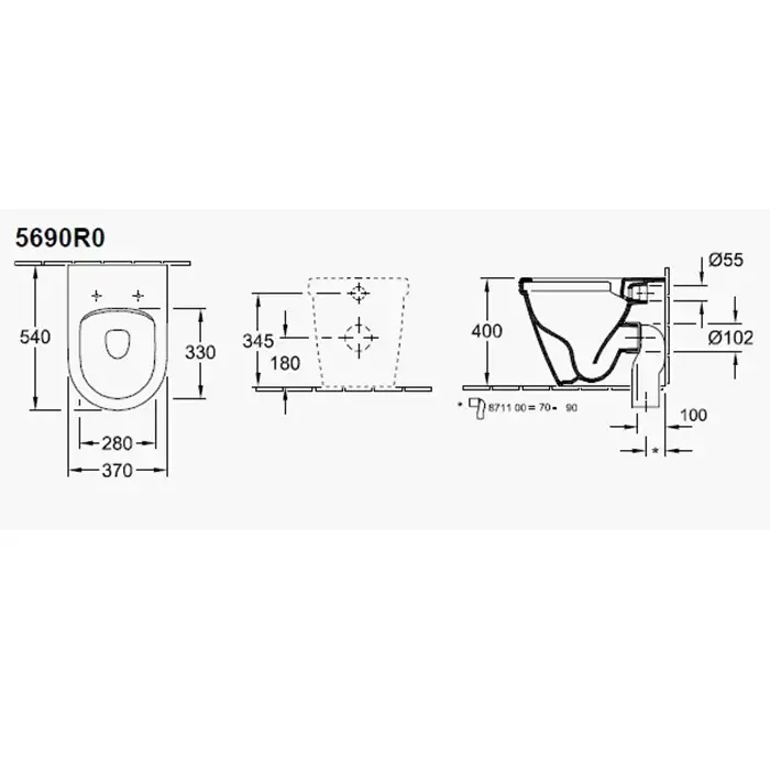 Villeroy&Boch Architectura Унитаз 37х53х33см., подвесной, безободковый, в комплекте сиденье c микролифтом, цвет: альпийский белый