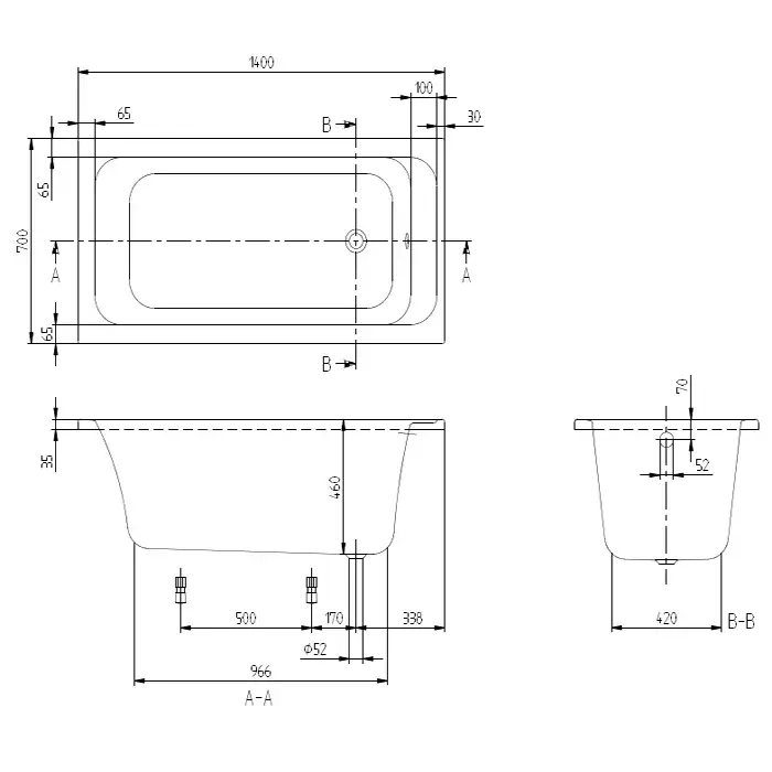 Villeroy & Boch Architectura Ванна 140х70х48,5 см, встраиваемая, цвет: альп. белый UBA147ARA2V01