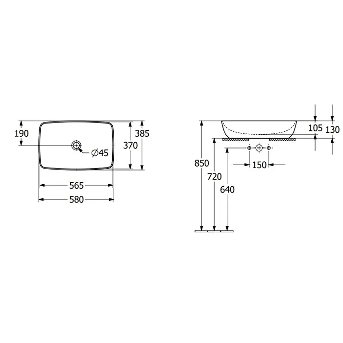 Villeroy&Boch Artis Раковина 58х38.5х12.5см., накладная, без отв., без перелива, TitanCeram, цвет: альпийский белый