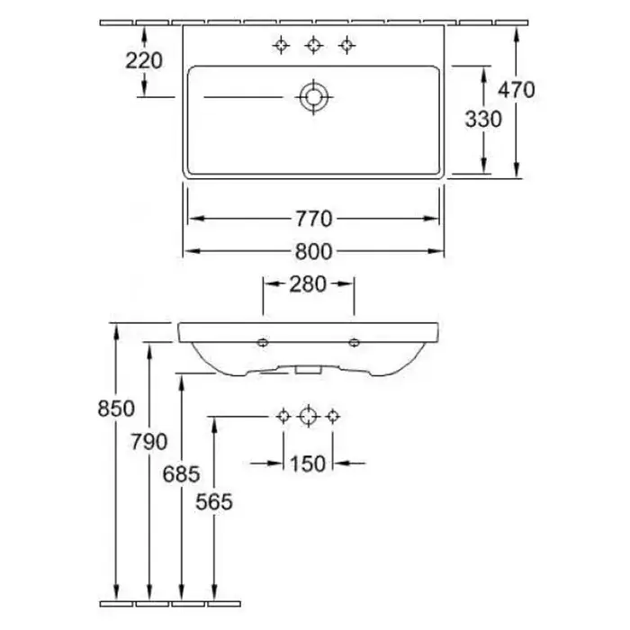 Villeroy & Boch Avento Раковина прямоугольная, 1 отверстие, 80x47 см, цвет: белый 415680R1