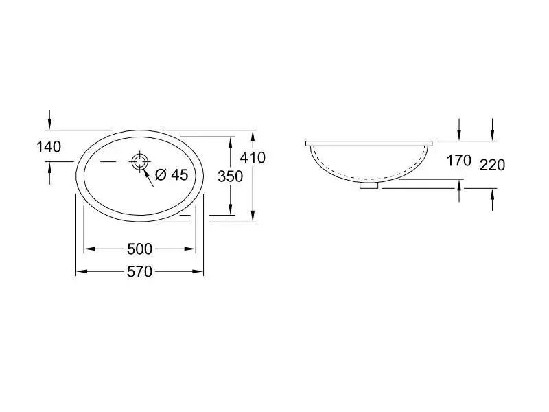 Villeroy&Boch Evana Раковина 50х35х22см., без отв., встраиваемая под столешницу, с переливом, с крепежом, цвет: альпийский белый