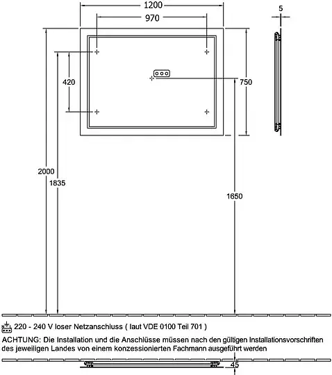 Villeroy & Boch Finion Зеркало, светодиодная подсветка 120x4,5x75h см F6001200