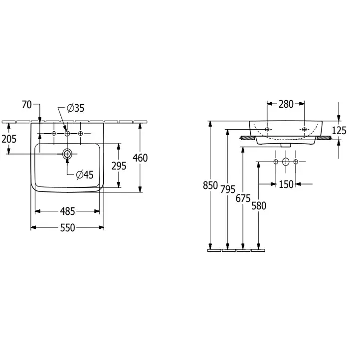 Villeroy & Boch O'Novo Pаковина 55x46x17,5 см, без отв., подвесная, цвет: альпийский белый 4A41MLT2