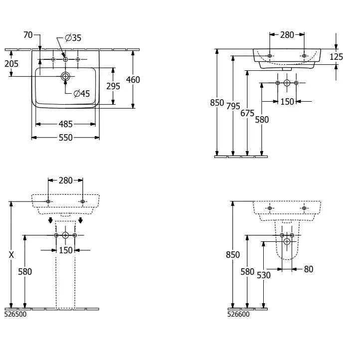 Villeroy & Boch O'Novo Pаковина 55x46x17,5 см, 1 отв., подвесная, цвет: альпийский белый 4A4156T2