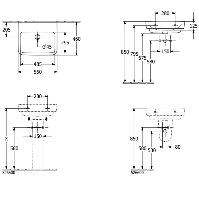 Villeroy & Boch O'Novo Pаковина 55x46x17,5 см, без отв., подвесная, цвет: альпийский белый 4A41MLT2