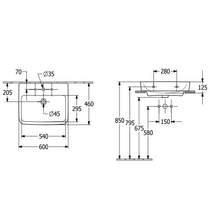 Villeroy&Boch O.novo Раковина врезная под столешницу 60x35см, с переливом, цвет: альпийский белый