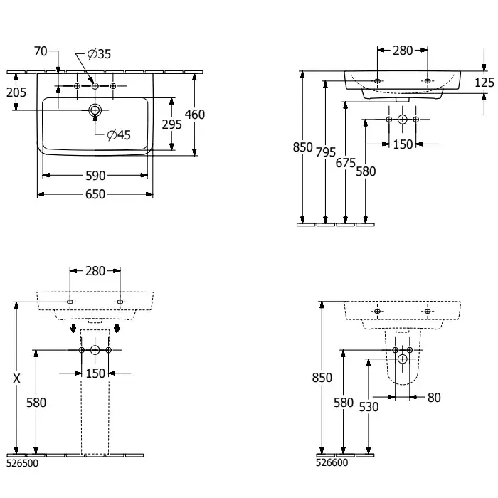 Villeroy & Boch O'Novo Pаковина 65x46x17,5 см, 1 отв., подвесная, цвет: альпийский белый 4A41KLT2
