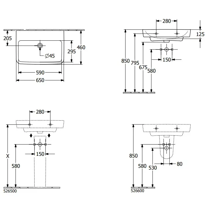 Villeroy & Boch O'Novo Pаковина 55x46x17,5 см, 1 отв., подвесная, цвет: альпийский белый 4A41MJT2