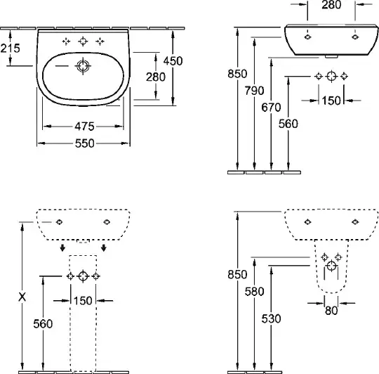 Villeroy & Boch O'Novo Раковина 55x45x18h см, цвет: alpin 51605501
