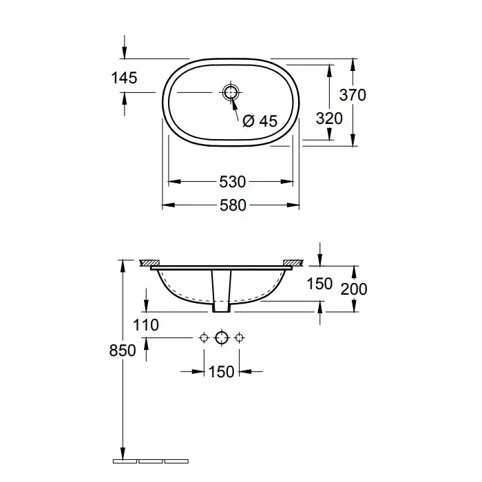 Villeroy & Boch O'Novo Раковина встраиваемая снизу, овальная 58x37 см, без перелива цвет: alpin 41625001