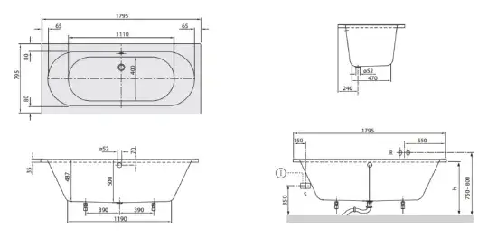 Villeroy & Boch O'Novo Ванна акриловая 180x80 см, цвет Аlpin UBA180CAS2V-01