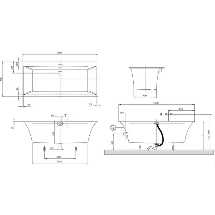 Villeroy & Boch Squaro Edge 12 Ванна встраиваемая 160х75х45 см, цвет: белый UBQ160SQE2DV01